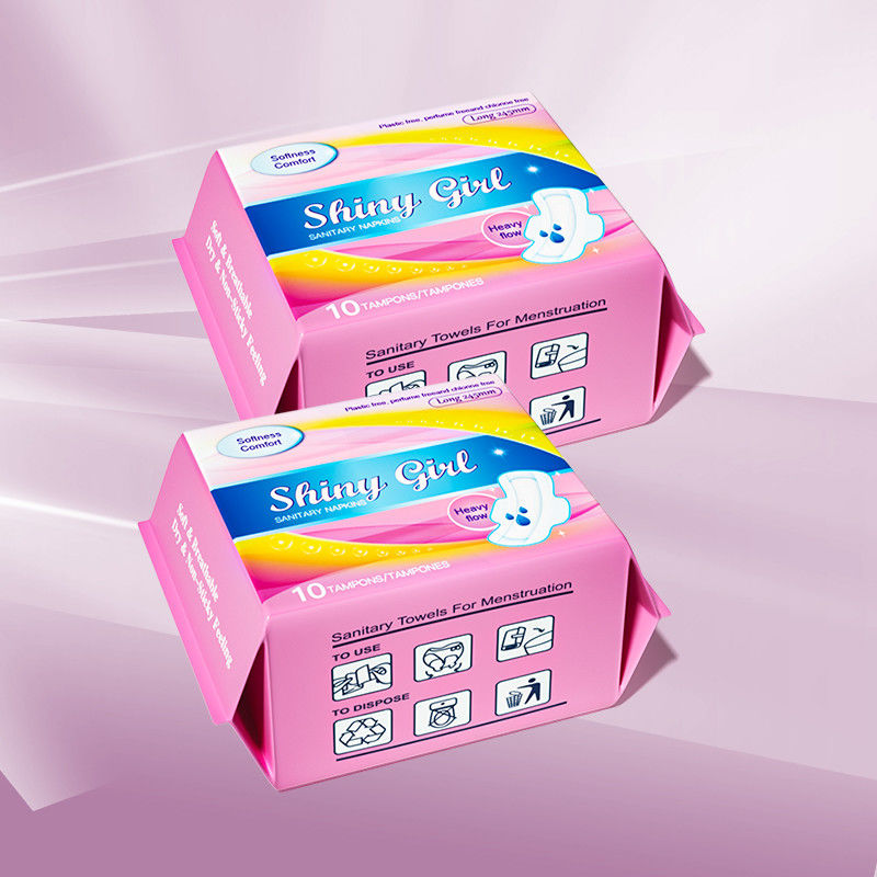 Materiais | Sumitomo Japão SAP; USA Pulp; Core Super-absorvente; Filme Perforado de Tecido Seco / Cobertura de Algodão Orgânico; Embalagem rápida e fácil com autocolante |